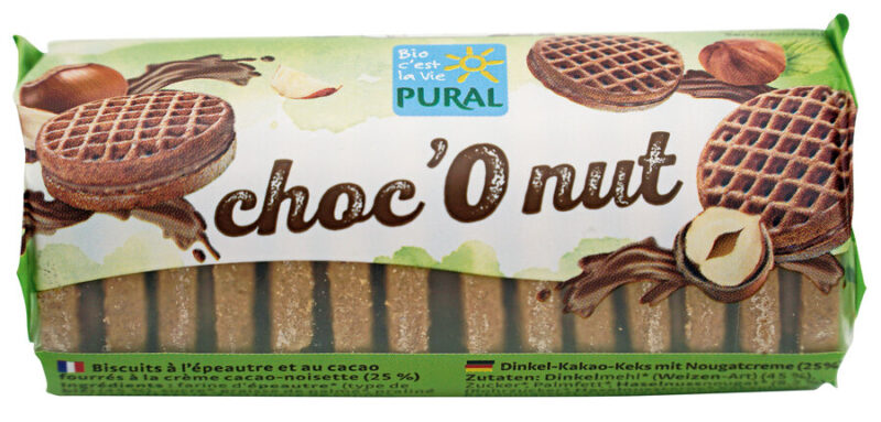 Entdecken Sie unsere Choc’O Nut: Die kleinen, praktisch verpackten Kekse, die Sie überall hin mitnehmen können! Zwischen zwei köstlich knusprigen Dinkelkeksen verbirgt sich eine großzügige Menge der leckeren Kakao-Nuss-Creme. Hergestellt ohne Milch und Eier sind unsere Choc’O Nut vegan.