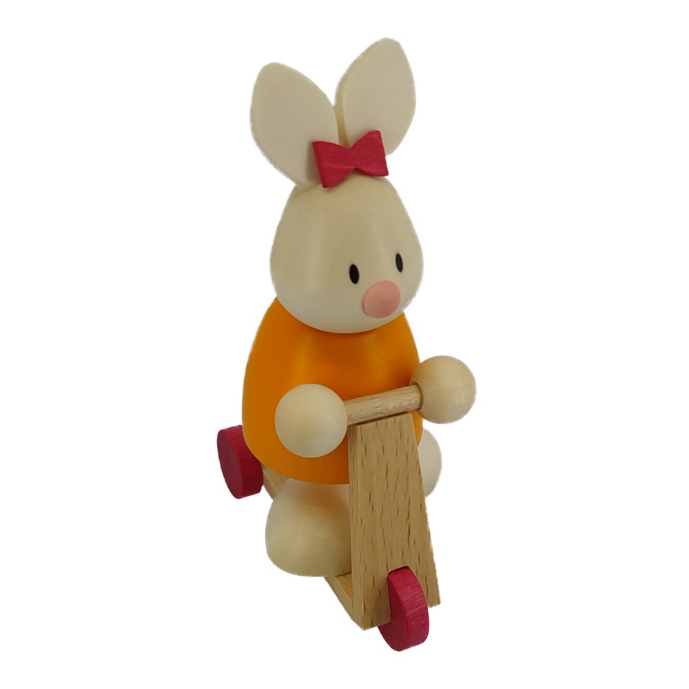 Die Figur mit Herz, Emma auf Roller ist ein Teil des zauberhaften Hasenpärchens Max und Emma.