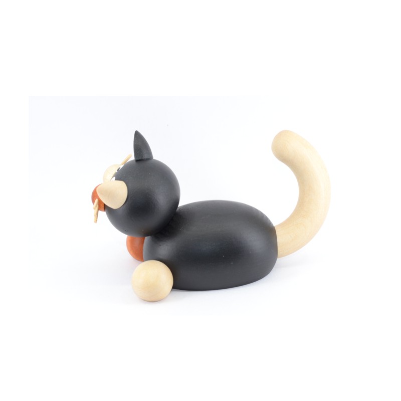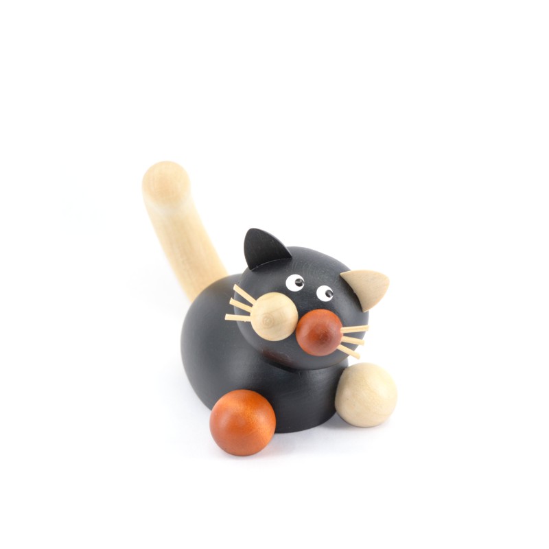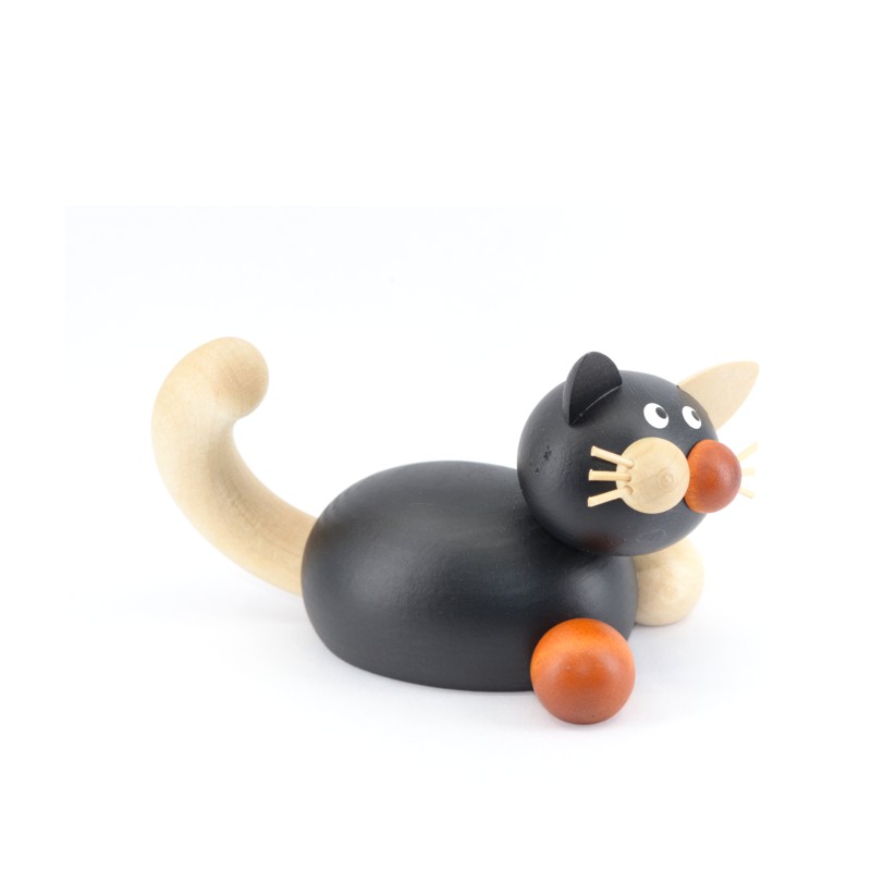 Die Drechslerei Martin stellt in liebevoller sowie detailreicher Handarbeit diese niedliche Glückskatze Lela auf der Lauer her.