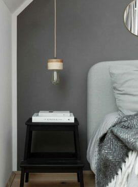 Das Design ist dabei geradlinig, reduziert und funktionell. Trotz dieser Schlichtheit sorgt die typisch markante Maserung der Hölzer in Kombination mit Pastell- oder Naturtönen für eine natürliche und warme Wohnatmosphäre. Das Kabel aus Naturfasern sowie der Baldachin aus Walnussholz komplettieren das skandinavische Leuchtendesign.