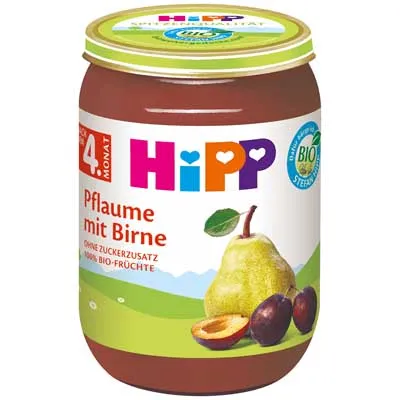Hipp, Früchtezubereitung, Bio, Pflaume mit Birne, 190 g Tiegel.