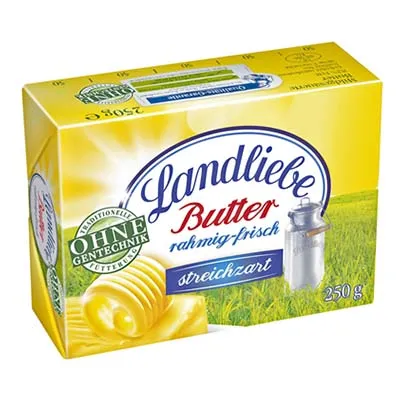 Landliebe, Tafelbutter, 82 % Fett, 250 g Packung.