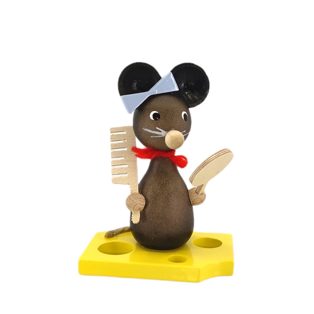 Liebevoll sowie aufwendig gestaltetes Mäusekind mit Spiegel und Kamm aus dem Hause Ralf Zenker.