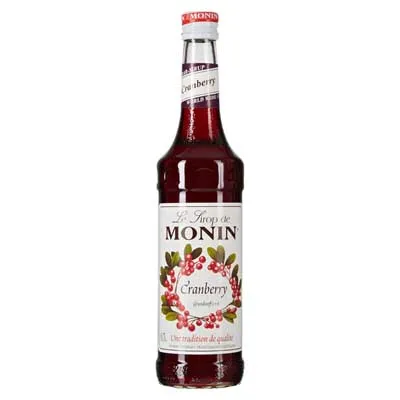 Cranberry Sirup von Monin ist eine leckere Zutat in Getränken, z.B. in Sekt oder Wasser. Dabei ist ein Mischungsverhältnis von einem Teil Sirup zu 8 Teilen Flüssigkeit ideal. Sie erhalten den Sirup abgefüllt in der Flasche zu 0,7 l.
