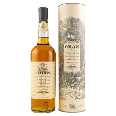 Oban ist der einzige Single Malt Scotch Whisky, bei dem sich die üppigen, komplexen Aromen der Highlands mit dem torfigen, maritimen Charakter der Inseln verbinden. Er enthält vollmundige, spätherbstliche Früchte, getrocknete Feigen mit honigsüßer Würze, gefolgt von einer rauchigen, malzigen Trockenheit. Eine ausgezeichnete Option für alle, die den Genuss eines Single Malts mit feinen Tafelfreunden verbinden möchten. Der Oban begleitet auf das Wunderbarste Fisch- und Geflügelgerichte. Den Highland Single Malt Whisky, 14 Years, 43 % Vol., aus der Oban Distillery erhalten Sie in einer 0,7 l Flasche.