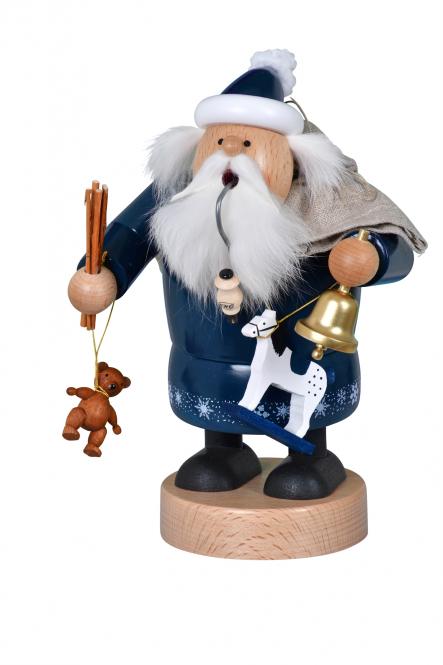 Der “alte Geselle” im neuen Gewand trägt einen blauen Mantel mit weißen Schneeflocken am Saum. Für die lieben Kinder hat der 20cm große Knecht Ruprecht Geschenke dabei: